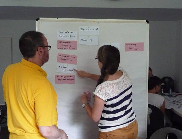Nachdem wir einen lauen Sommerabend auf dem Markt beim Miebach’s verbracht haben, ging es heute los mit dem Projekt: Sommerkurs. Neben dem Einsatz von Kick-off, Brainstorming für einen identifizierenden Projekttitel, Projektstrukturplan und weiteren Instrumenten, empfahl Miriam Albers, die heutige Referentin, als wichtige Methode den Einsatz des „gesunden Menschenverstandes“.